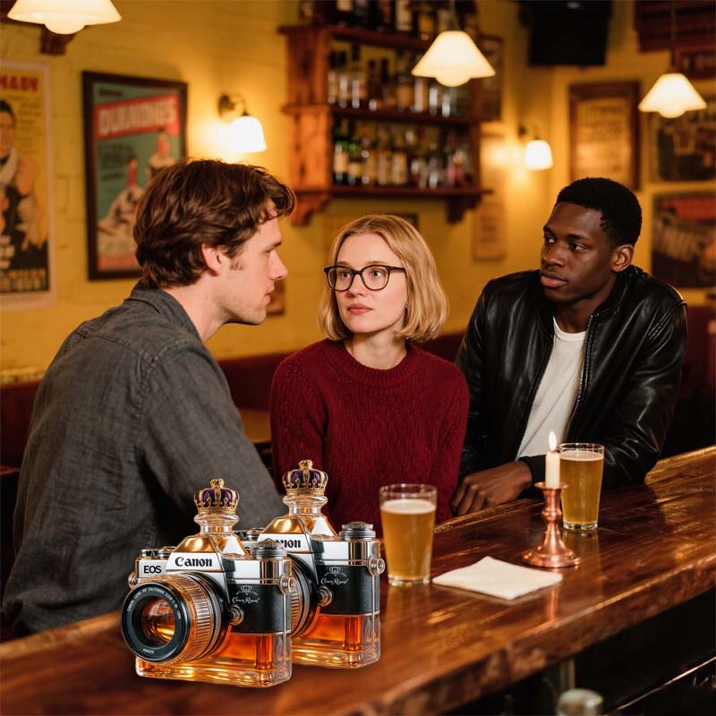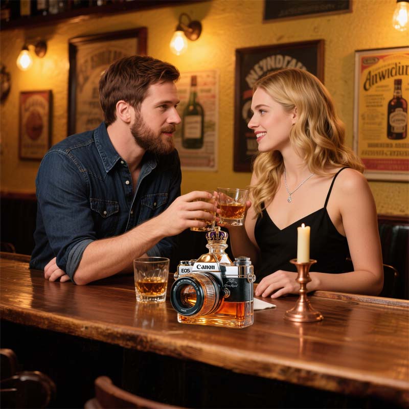 A bottle that looks through the world like a lens—this camera-shaped glass brings a touch of playful creativity to your drinkware collection. Whether it’s sparkling water or a rich amber cocktail, the way light bends through the “lens” makes every pour feel like a shot worth framing.