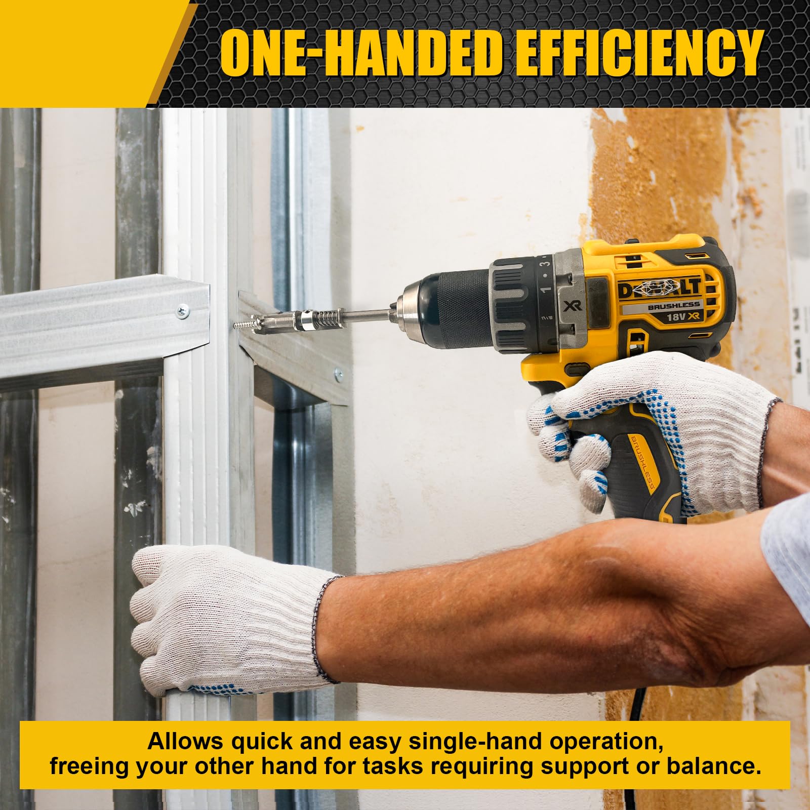 Secure Screw Retention: Powerful spring-loaded clamp firmly grips screws to prevent dropping, ideal for overhead tasks and tight spaces.